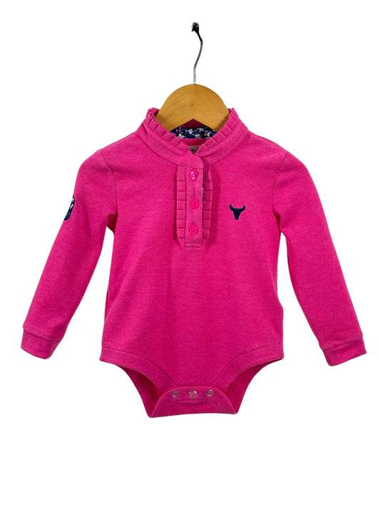 Hallie Baby Raspberry Pink Long Sleeve Romper - ruffle collar
