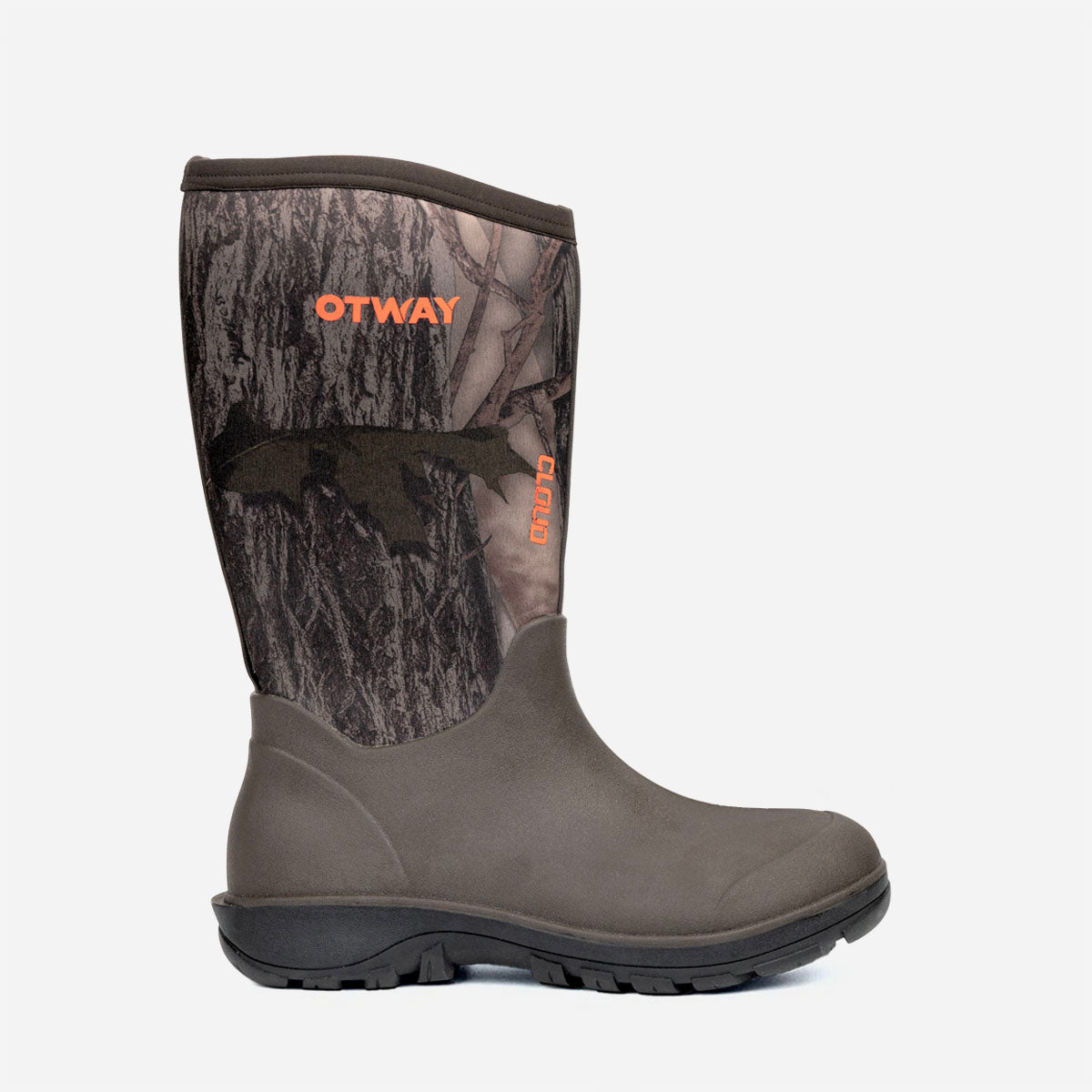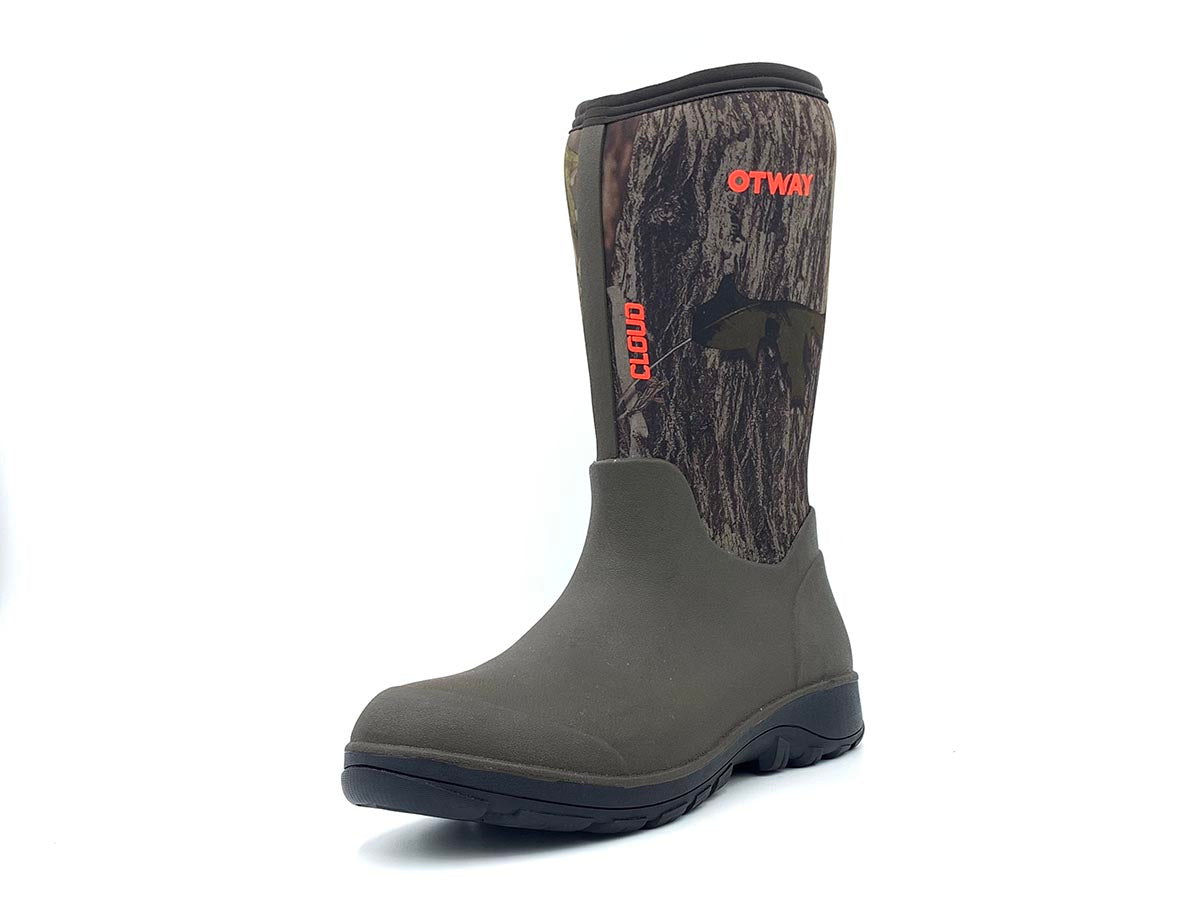 Men’s Cloud Hi Camo boots! Featuring a single piece rubber sole and upper, there is zero chance of leakage underfoot. These boots are amazingly lightweight and combined with a super spongy trampoline midsole, an all terrain sole and soft, flexible (and 100% waterproof) 5mm neoprene shaft.
